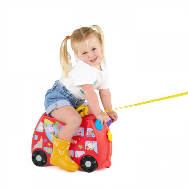 Sjedište kofera oblikovano je u sedlo kako bi dijete pri vožnji uživalo, a “rogovi” im služe kao rukohvati.